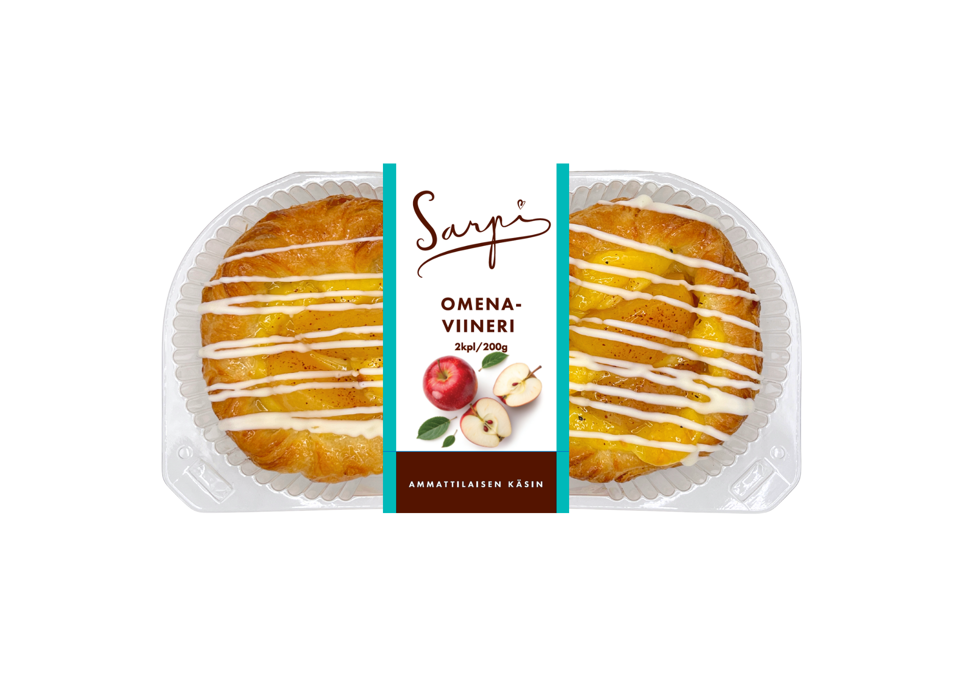 Viineripohja (VEHNÄjauho, vesi, VOI, KANANMUNA, sokeri, hiiva, MAITOjauhe, vehnägluteeni, jodioitu suola, emulgointiaine E472e, vehnämallasjauho, jauhonparanne E300), omenalohko [omena 23 %, hapettumisenestoaineet (E300, E330)], vaniljakreemi [vesi, sokeri, glukoosi-fruktoosisiirappi, muunnettu tärkkelys E1442, värit (E160a, E101), stabilointiaineet (E460, E516, E466), suola, säilöntäaine E202, happamuudensäätöaineet (E330, E332ii), aromi], hyytelö [vesi, sokeri, glukoosi-fruktoosisiirapppi, sakeuttamisaine E440, happamuudensäätöaineet (E330, E332, E509), säilöntäaine E202], kuorrute (sokeri, kokonaan kovetettu kookosrasva, kokonaan kovetettu auringonkukkaöljy, maitojauhe, LAKTOOSI, emulgointiaine E322, luontainen vanilja-aromi), tuoreJUUSTO, sokeri, kaneli, vanilja-aromi (aromi, väri E150a), muunnettu tärkkelys.